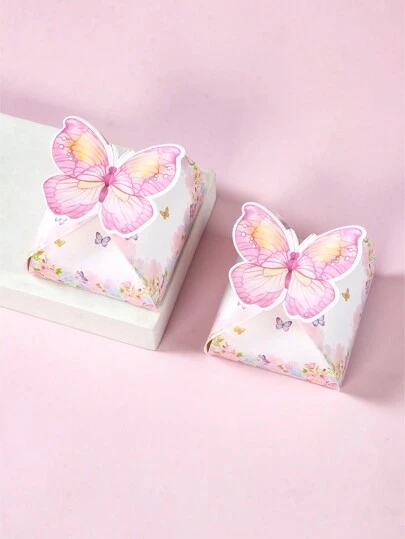 12pcs Pink Butterfly Style Mini Candy Gift Boxes Snack Package, Birthday Party Wedding Accessories Candy Box Packaging Gift For Guest - Multicolor - View 1