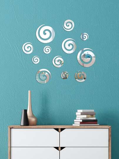 12pcs Spiral Mirror Surface Wall Sticker - Silver - View 1