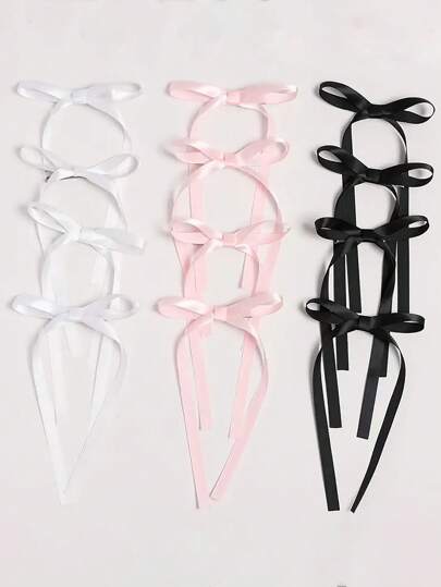 ROMWE Kawaii 12pcs/Set Elegant Ribbon Bow Hair Clips With Streamers, Side Clip Half Tie Hair Accessories Valentines - Multicolor - View 1