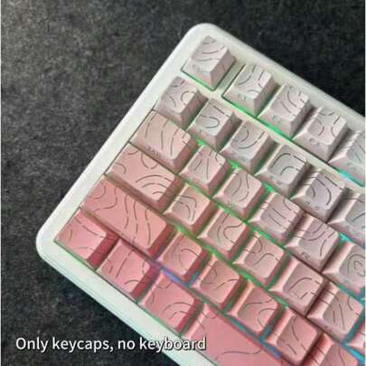 130+ Keycaps Set, Powder Pink Contour Line Design, Backlit Side-Printed Keycaps, Compatible With 104/98/87/75/68/64/61 Keys - Baby Pink - View 1