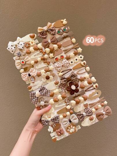 15/30/60pcs Cartoon Hair Clips, Cute Girls Hair Accessories, Practical & Versatile - Multicolor - View 1