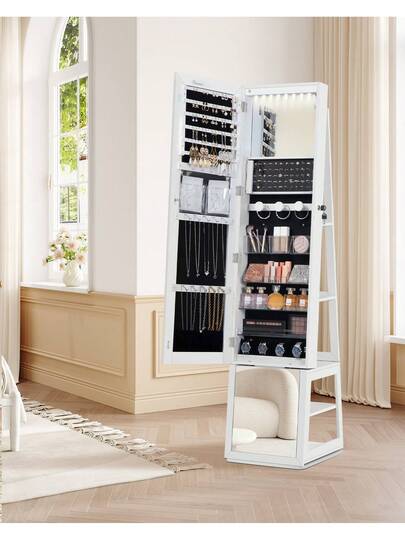 16 LEDs Jewelry Cabinet Armoire With 360° Rotating Base, 63" Standing Jewelry Organizer, Lockable Full-Length Mirror, 4-Tier Storage Shelves, 4-In-1 Multifunctional - Black - View 5