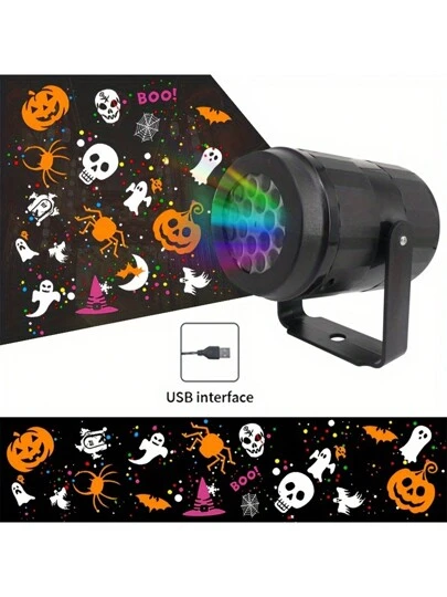 16 Patterned USB Powered Christmas Projector Lights - Outdoor/Indoor Use - Perfect For Halloween, Christmas, Weddings, And More - LED Technology - No Battery Included Halloween Decoration Room Decor Halloween Garden Decor For Gift Fairy Holiday Decor Festival Decor - Multi-color light - View 5