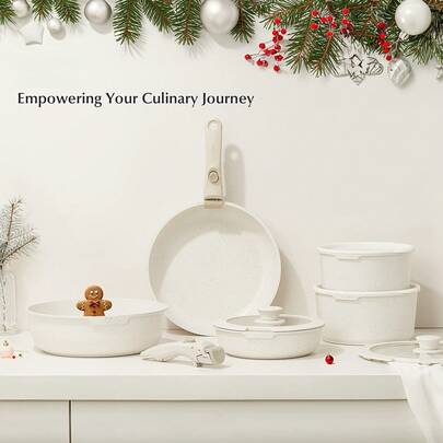 17 PCS Pots And Pan Set, Nonstick Cookware Set Detachable Handle, Induction Kitchen Cookware Sets Non Stick With Removable Handle, RV Cookware Set, White - 17PCS - View 5