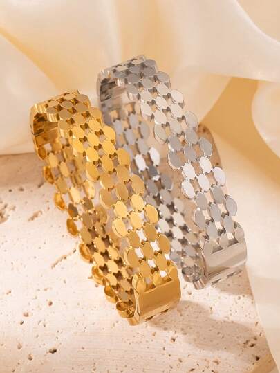 18K Gold Plated Stainless Steel Honeycomb Design Bracelet Stackable Minimalist Jewelry For Daily & Party Sparkling Bangle - Honeycomb Bracelet - View 1