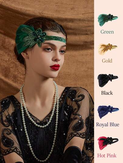1920s Flapper Feather Headband Rhinestone Vintage Feather Headpiece For Roaring 20s Gatsby Party Masquerade Halloween - A - View 13