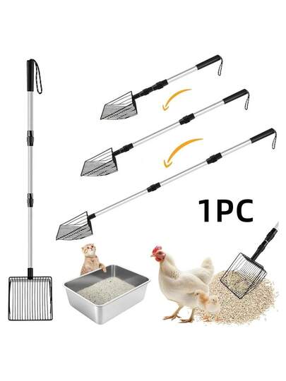 1PC Chicken Poop Scoopers, 3 In 1 Adjustable 22-42 Inch Long Cat Litter Scoop Chicken Scooper, Simple To Clean Metal Cat Litter Scoop Cat Poop Scooper, For Cat Chicken Farm Cleaning - Black - View 1