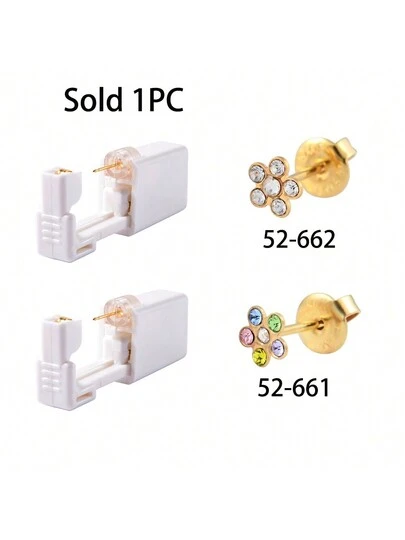 1PC Ear Piercing Kit Self Ear Piercing Gun, Disposable Selectable Ear Pearcings Kit Built In Flower 316 Stainless Steel Earring Studs Ear Piercing Gun Kit Tool - Gold - View 1