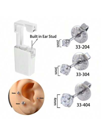 1PC Ear Piercing Kit Self Ear Piercing Gun, Disposable Selectable Ear Pearcings Kit Built In Flower 316 Stainless Steel Earring Studs Ear Piercing Gun Kit Tool - Silver - View 1