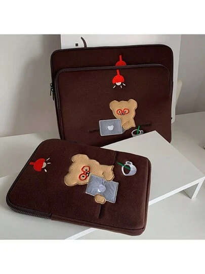 1PC Ins Cute Brown Learning Bear Computer Bag IPad Tablet Storage Bag Shockproof And Wear Resistant Laptop Protection Case Back To School - Coffee Brown - View 1