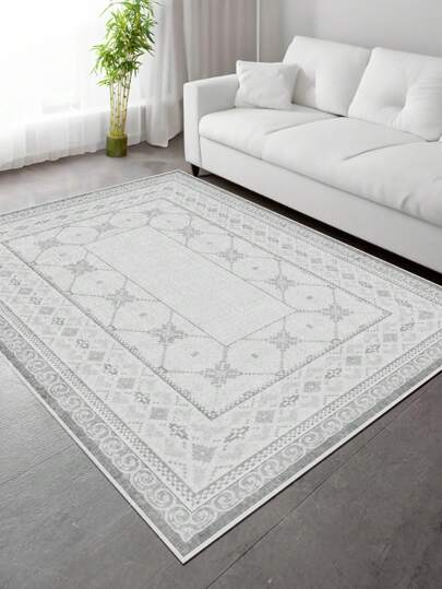 1PC Non - Slip Machine Washable Rug, Retro Style Gray Carpet, Living Room Bedroom Kitchen Office And Door Mat, Washable, Room Decoration - Grey - View 1