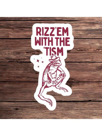 1PC Rizz Em With The Tism Frog Waterproof Vinyl Sticker Decal - Quirky Frog Meme, Durable And Weatherproof, Ideal For Laptops, Water Bottles, And Cars | Back To School - Multicolor - View 1