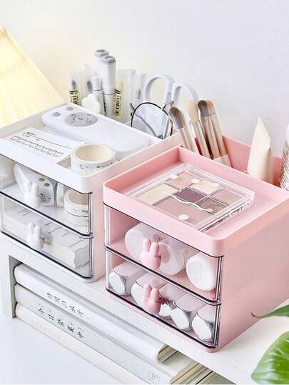 1PC Small Drawer Home Desktop Drawer Storage Box Creative Pen Container Storage Box Stationery Organizer Box Storage Box, Work Position Shelf On The Desk, Women's Dresser Cosmetics Storage - Multicolor - View 1