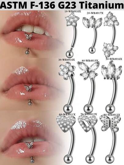 1PCTItanium Butterfly Rook Piercing Cz Crown Eyebrow Navel Ring Flower Cuved Barbell Ear Tragus Cartilage Earrings Piercing - Titanium Original Color - View 15