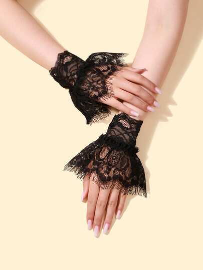 1Pair Lace Wrist Cuffs With Elastic, Decorative Fingerless Gloves For Spring Autumn Halloween