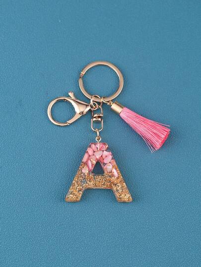 1Pc Cute Pink Letter Key Chain - Perfect Gift For Kids, Adults, Schoolbag, Purse, Wallet & Car Key Decorations! - Pink - View 1