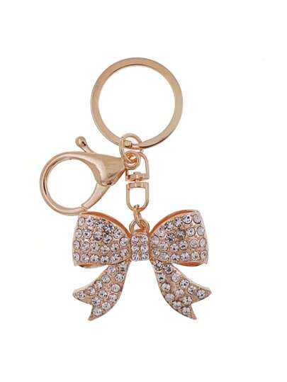 1Pc Girl Rhinestone Bling Sparkling Metal Bow Keyring Keychain Bag Charm Backpack Car Pendant Mother's Day Birthday Party Bar - Gold - View 1