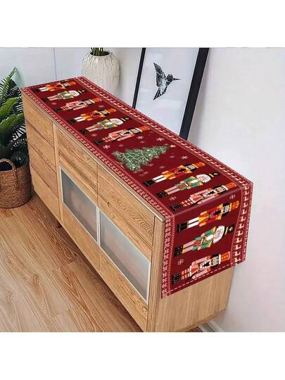 1Pc -Polyester-Red Nutcracker, Christmas Tree And Snowflake Table Runner, Home Decor, Festive Tablecloth For Coffee Or Dining Tables,Christmas Decorations - Multicolor - View 1