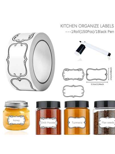 1Roll(150Pcs) Vintage Writable Floral Food Rotation Stickers With Black Erasable Pen 0.98*2.24'' Satety Date Freezer Pantry Index Labels Sealing Tag Perfect For Kitchen Storage Containers, Food Jars, Takeout, Etc - White - View 8