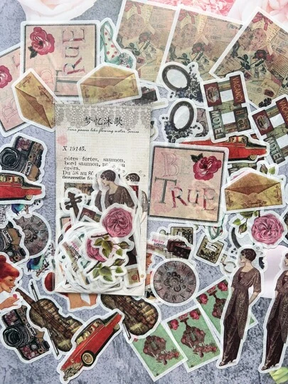 1pack(60pcs) Vintage Sticker Set For Diy Journal Scrapbooking - Multicolor - View 1
