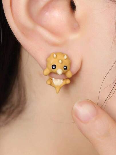 1pair Cute Animal Cartoon & Comic Earrings Suitable For Everyday Wear Or As Birthday Present - Multicolor - View 4