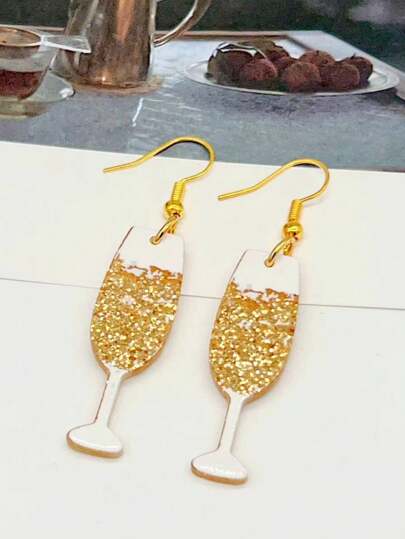 1pair Fashionable Acrylic Wine Glass Shaped Women's Earrings, Simple Design For Parties And Vacations - Champagne - View 1