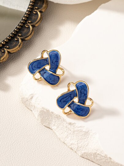 1pair Geometric Triangle Resin Drop Earrings - Blue - View 1