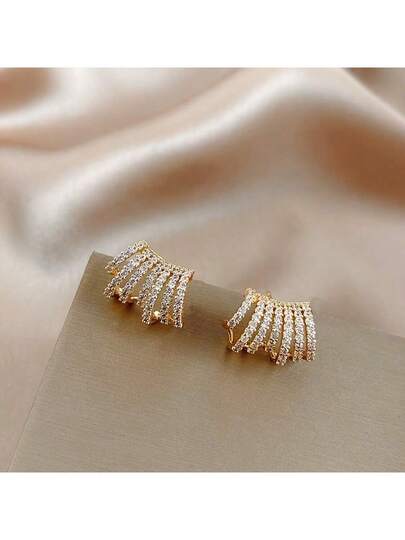 1pair Round Rhinestones Stud Earrings With Rhinestones - Yellow Gold - View 1