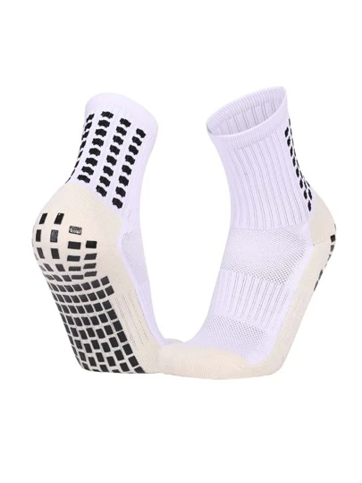 Sports Outdoor 1pair Soccer Stockings With Silicone Anti-Slip Grips, Breathable And Friction-Reducing - White - View 1