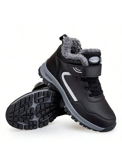 1pair Unisex Sports Style Warm Waterproof Shoes With Hook And Loop For Winter Outdoor Activities, Anti-Slip - Black - View 1
