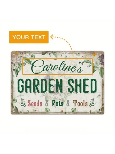 1pc [Customized] Personalized Garden Shed Sign, Custom Name, 12x8 Inch Metal Plaque Gifts Birthday Graduation - Multicolor - View 1