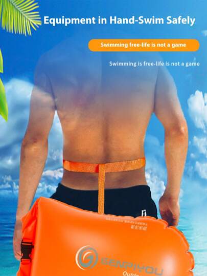 1pc PVC Swimming Bucket Dry Bag  Inflatable Open Swimming Buoy Tow Floating Bag Waterproof Double AirBags Water Sport Bags Pool Float - Orange - View 1