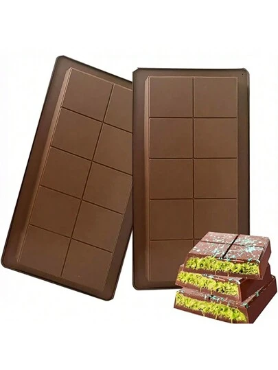 1pc 10-Cavity Silicone Chocolate Mold, Non-Stick Reusable Rectangular Deep Chocolate Mold With Release Stick, DIY Handmade Chocolate For Christmas, Thanksgiving, New Year - Chocolate Brown - View 1