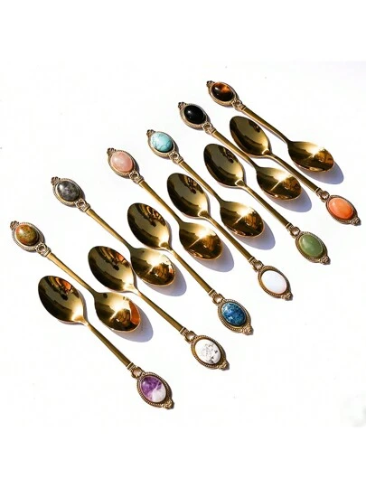 1pc 13cmX3cm Natural Crystal Mini Jade Spoon Amethyst Tiger Eye Mixing Spoon Creative Gift Spoon - Multicolor - View 1