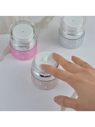 1pc 15ml Refillable Vacuum Jar With Rhinestones, Cosmetic Cream Storage Bottle For Travel, Portable Accessories Storage - Multicolor - View 1