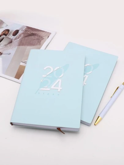 1pc 2024 A5 Blue English Daily Planner For Time Management And Schedule Planning (365 Days) - Blue - View 2