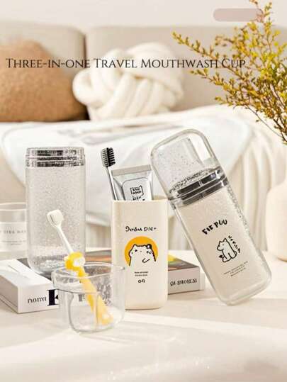1pc 3-In-1 Travel Wash Cup/Couples Toothbrush Toothpaste Rinse Cup/Convenient Travel Toothbrush Cup Toothpaste Holder Home Bathroom Decor Fall Decor Back To School - Multicolor - View 1