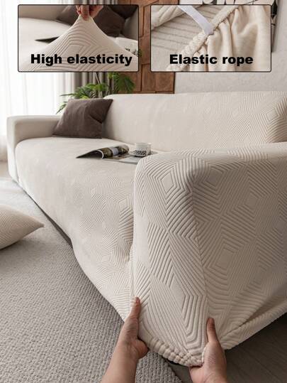 1pc 3D Sofa Cover Multifunctional Full Coverage Sofa Slipcover, Solid Color Leaf Pattern Design, Protective Sofa Cover For Holiday Decoration, Stretch All-Inclusive Sofa Cover, With 1 Cushion Cover Included - Beige - View 7