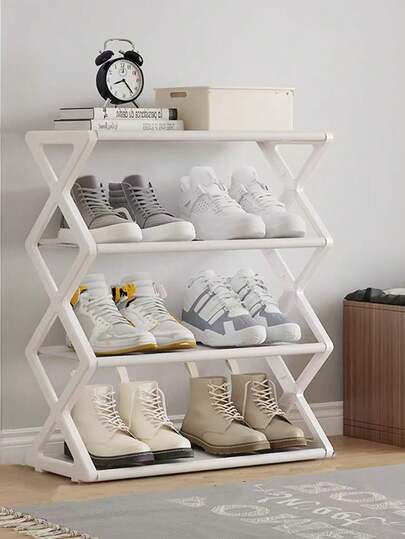 1pc 4-Tier X-Shaped Shoe Rack - Foldable Space-Saving Shoe Organizer, Steel Tube Shoe Rack, Easy Assembly No Tools Required, Suitable For Home, Dorm, Porch, Office, Dust-Proof Design, Applicable For Entryway, Hallway, Bedroom And Dorm - Multicolor - View 1