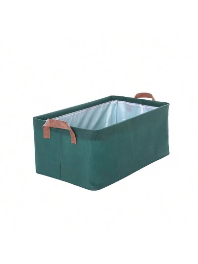 1pc 45*25*20cm Portable Dark Green Clothes Storage Box With Handle, Foldable Fabric Organizer For Bedroom Wardrobe, Large Capacity - Dark Green - View 1