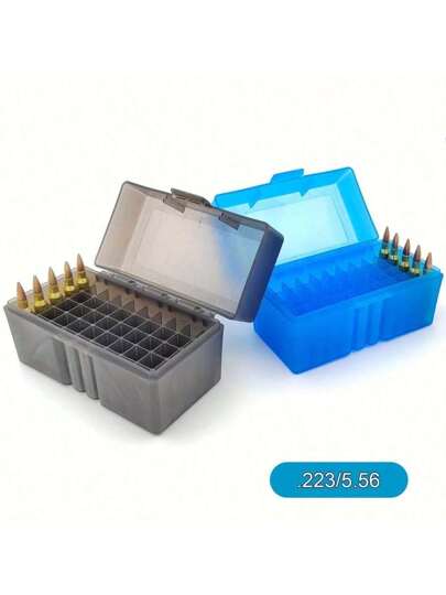 1pc 50 Rounds Ammo Box Bullet Case Flip-Top Ammo Bullet Case 223 Storage Box Tool Box Storage For Travelling Gun Accessories - Multicolor - View 1