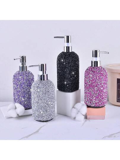 1pc 500ml Rhinestone Embellished Plastic Refillable Shower Gel/Shampoo/Lotion Dispenser Bottle - Multicolor - View 1