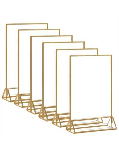 1pc 5X7inch Gold Sign Holder Acrylic Double Sided Table Menu Display Stand, Wedding Table Numbers Holder - Gold - View 1