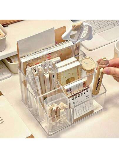 1pc Acrylic Desk Organizer For Student, Creative Stationery Holder, Clear Desk Storage Shelf For Office - Clear - View 1