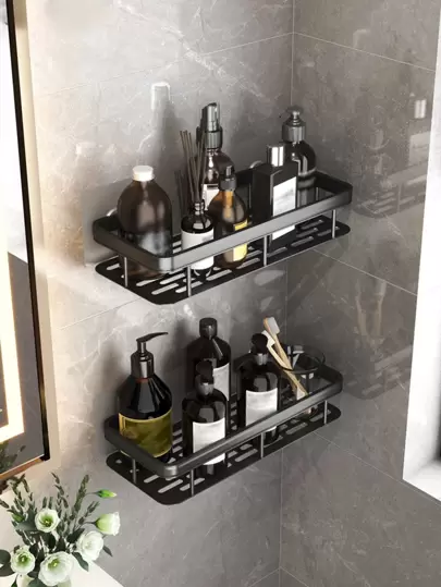 1pc Aluminum Alloy Bathroom Storage Rack, Modern Punch-Free Organizer For Bathroom Bathroom Accessaries - Black - View 1