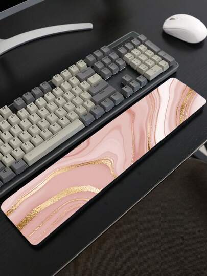 1pc Rubber Bottom Wrist Rest Pad For Desktop Computer/ Laptop Keyboard, Memory Foam/ Elastic Lycra/ Skin-friendly Milk Silk Fabric, Anti-slip Supportive Cushion For Office - Multicolor - View 1