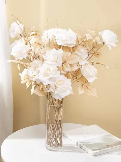 1pc Artificial Flower Stem, Polyester Romantic Simulation Flower For Wedding Party, DIY Floral Decor Home Decoration With Stem - Multicolor - View 1