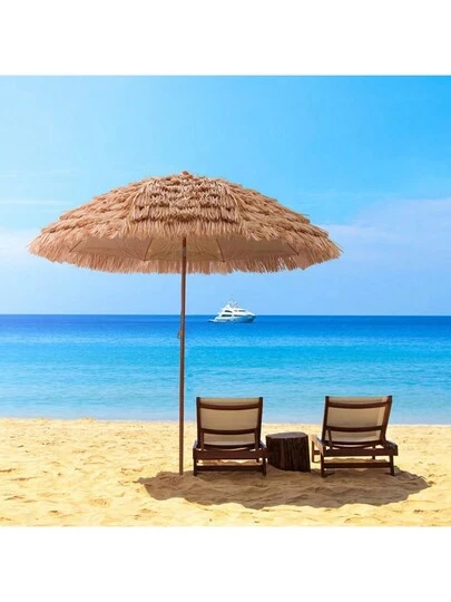 1pc Artificial Straw Beach Umbrella For Outdoor - Khaki - View 10