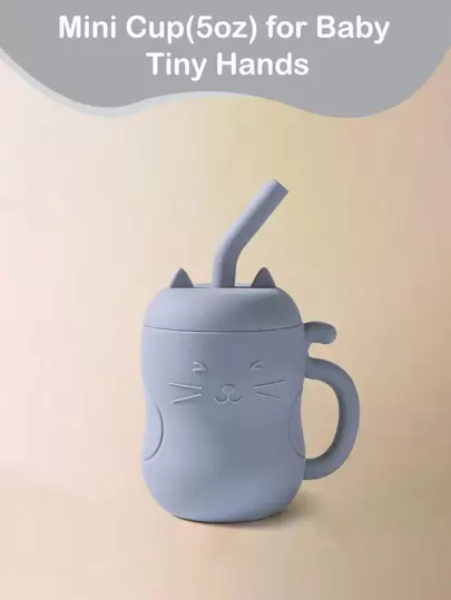 1pc Baby Straw Cup (5oz/150ml), Silicone Toddler Training Cup With Handle, Infant First Stage Practical Feeding Cup - Dusty Blue - View 5