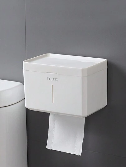 1pc Bathroom Tissue Box & Holder, Wall-Mounted Toilet Paper Rack With Storage Shelf, Punch-Free - White - View 1
